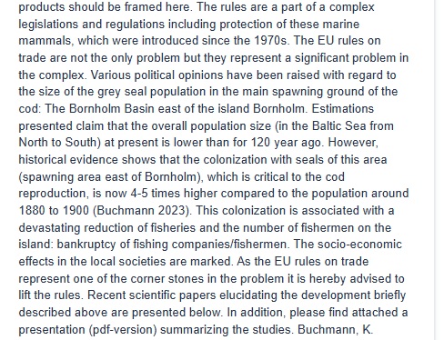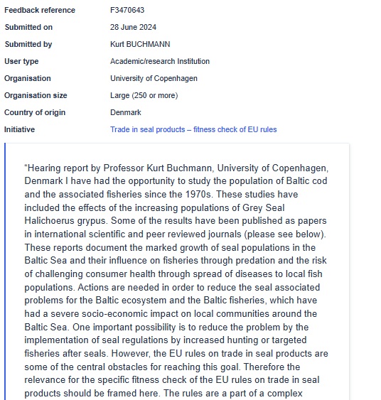 The first slideshow below shows images of the comments by Danish-based contributors submitted in 2024 to the public consultations process for the fitness check of the EU seal product ban.