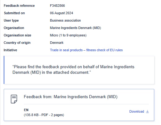 Response to “Comments provided to the “Trade in seal products – fitness check of EU rules” 2024 public consultations (Denmark)”