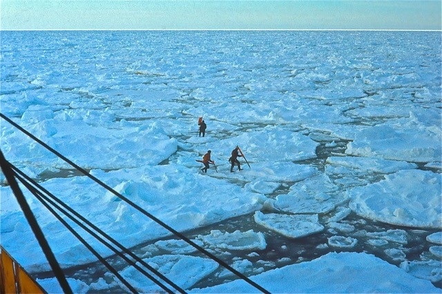 Photo: Seal hunters on the ice flows on the Newfoundland Front (circa 1978) – Copyright: Jim Winter